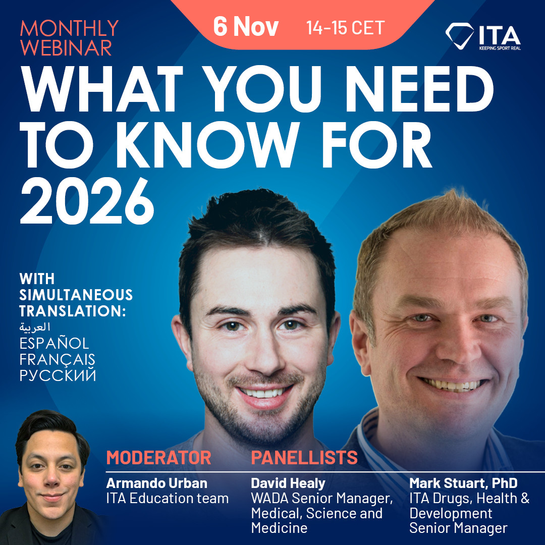 ✨ Don't miss this opportunity to stay up to date with the latest anti-doping developments and engage directly with ITA experts!