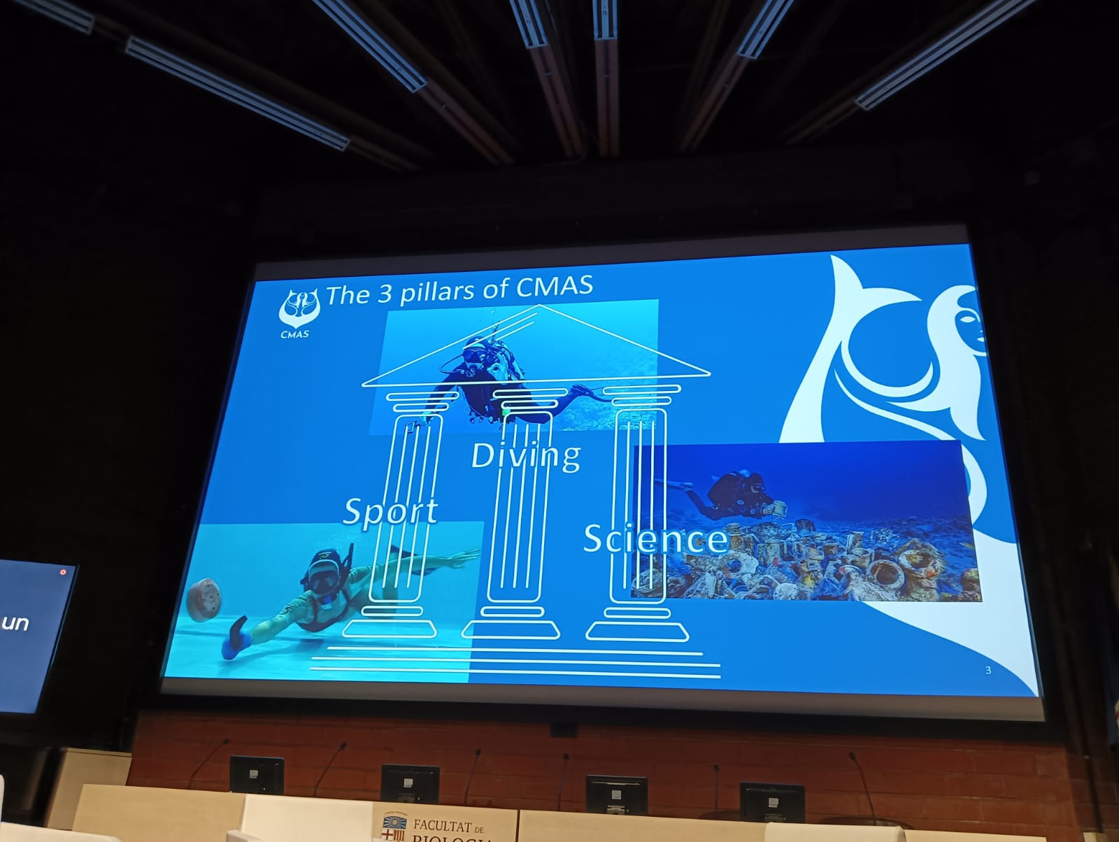 During the event, the CMAS delegation was led by John Geurts, President of the CMAS Scientific Committee, who delivered a keynote lecture at the Faculty of Biology Auditorium of the University of Barcelona, where he presented the fundamental principles of the Confederation and the main lines of work being developed within its scientific division.