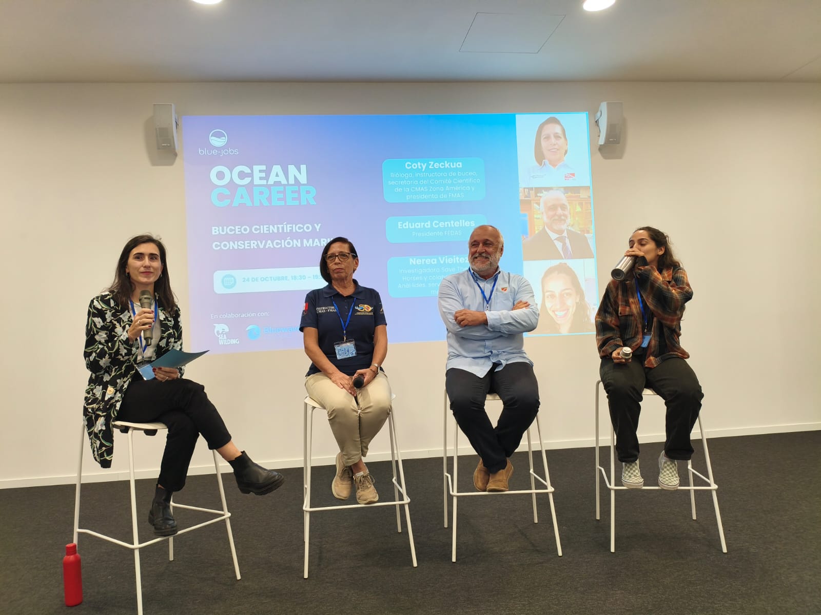 In addition, Coty Zeckua, Secretary of the CMAS Scientific Committee, and Eduardo Centelles, President of FEDAS, took part in the Ocean Career session held at the Port Olímpic in Barcelona. They presented to university students the various training and specialization opportunities offered by CMAS in the fields of scientific and technical diving.